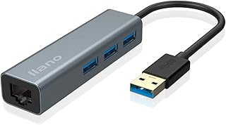 Nllano USB A 3-Port Portable Hub with Ethernet Port,Support USB 3.0,Network Adapter for New Macbook,Desktop PCs and More,Multi-Port Adapter, USB C Dongle,Aluminum Alloy (USB-A Gris)
