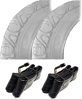 Lot de 2 pneus de fauteuil roulant - 260 x 85 mm - Gris - Avec 2 valves d'angle pneumatiques - Structure robuste - Pour scooter