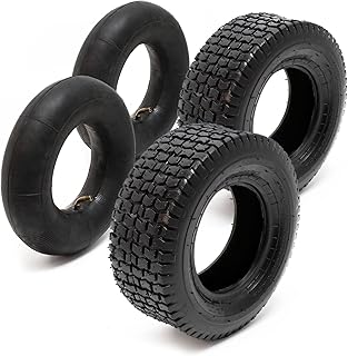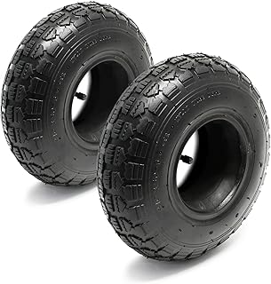 WilTec Lot 2X Pneus 2X Chambres air Tondeuse autoportée 11x4.00-4 4PR Valve coudée Chariot Diable Jardin