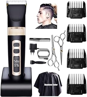 Tondeuse Cheveux Hommes Professionnel Électrique Tondeuse à Cheveux Sans Fil Tondeuse Barbe pour Homme Lame en T Tondeuse à Barbe Recharge USB Avec 4 Peignes de Guidage pour Homme et Usage Domestique