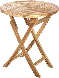 PrimeMatik - Table de Jardin Pliante Ronde 66 cm en Bois de Teck certifié