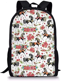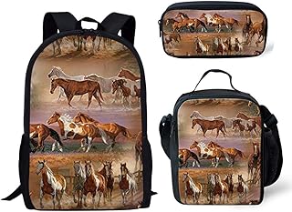 Sac à dos pour enfant Imprimé cheval vintage Campus Sac à dos mignon pour enfants Sac à dos imprimé 3D Sac de voyage pour les filles et les garçons Multicolore Horse-6 44x28x13cm