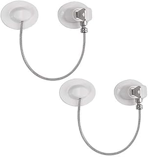 LiNKFOR 2pcs Serrure de Réfrigérateur Sécurité Enfant Mini Verrouillage de Réfrigérateur Porte 18cm Limiteur de Câble 3M Forte Adhésif Pas Percer Réfrigérateur Congélateur Armoire Tiroir Blanc