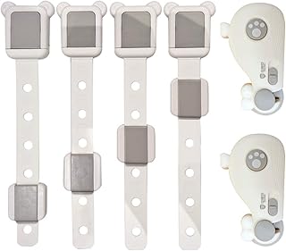 4PCS Verrou de Sécurité pour Enfants Serrure de Porte de Réfrigérateur Blanc Serrures Câble de Limitation d'Ouverture pour Tiroir de Porte Réfrigérateur avec 4 Clés pour Casier Sécurité