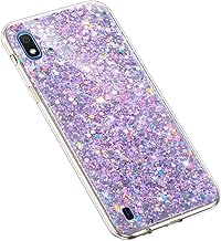 Uposao Samsung Galaxy A10 Coque Glitter de Luxe,Bling Gliter Strass Paillettes Coque Transparent Cristal Scintilla Silicone TPU Souple Housse Etui de Protection Coque pour Galaxy A10,Violet