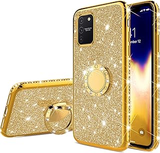 Compatible avec Samsung Galaxy A91 Coque,Galaxy S10 Lite Coque Silicone Brillant Bling Glitter Paillette Strass Housse de Peotection,JAWSEU Ultra Mince Flexible Souple TPU Antichoc Coque,Or