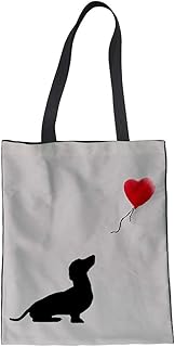 Nopersonality Sac fourre-tout en toile avec motif teckel et cœur en coton pour femme