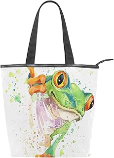 Sac fourre-Tout en Toile pour Femme Motif Grenouille Blanc/Vert Taille L