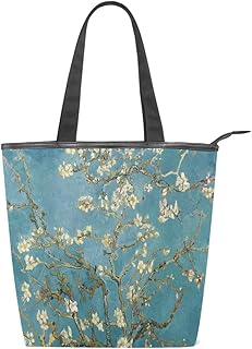 Van Gogh Sac fourre-tout en toile pour femme Motif fleurs d'amandier Bleu