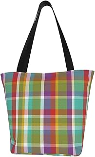 Sac fourre-tout en toile personnalisé, motif carreaux de Madras - Lavable - Pour femme